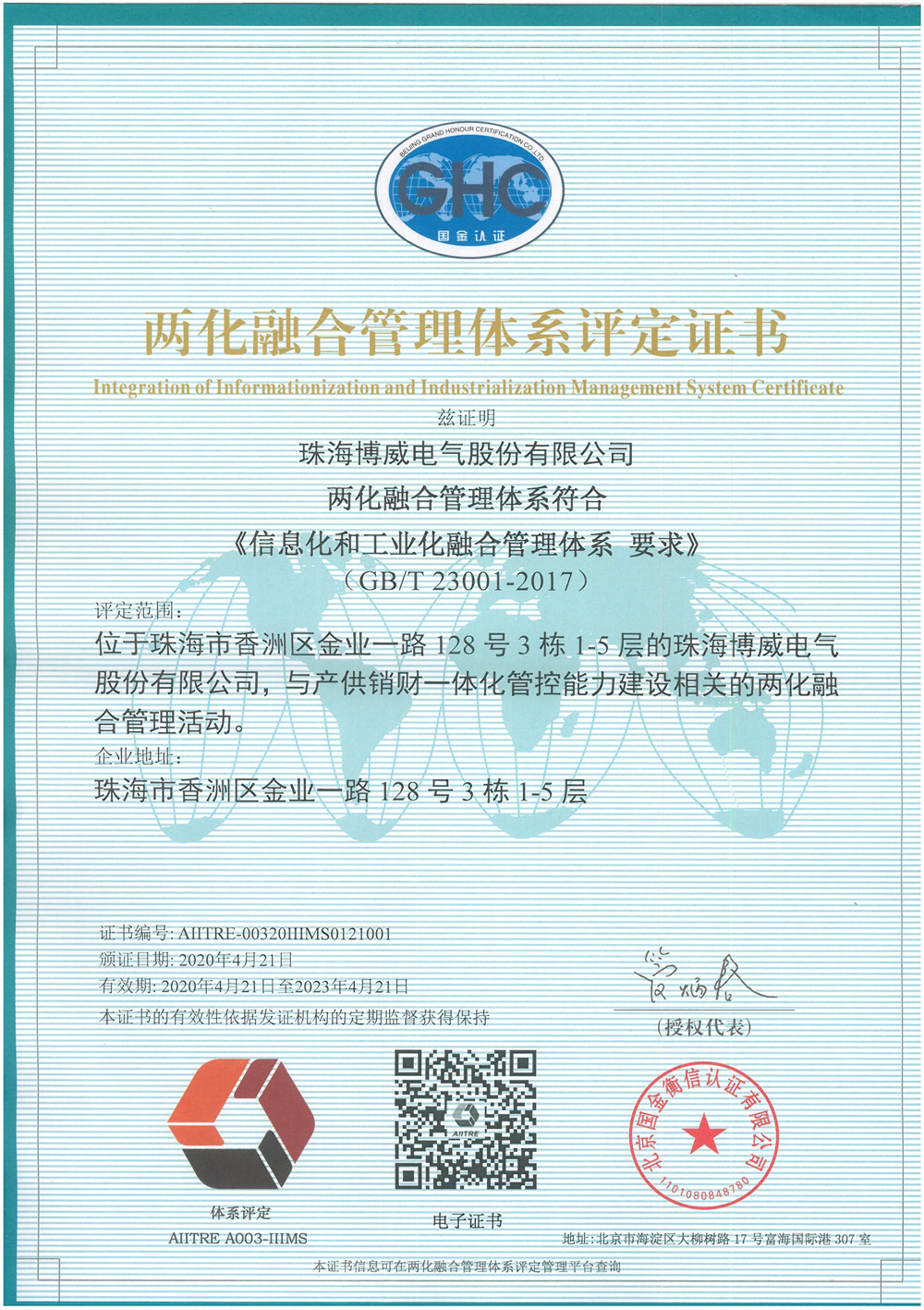 兩化融合體系證書(shū)