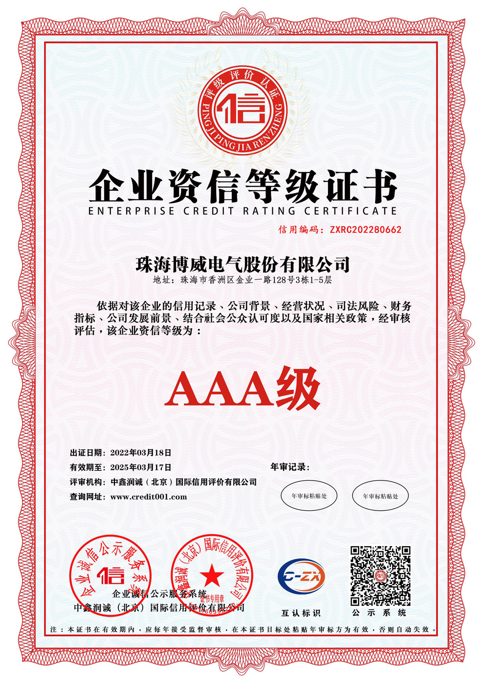 企業(yè)資信等級(jí)證書(shū)