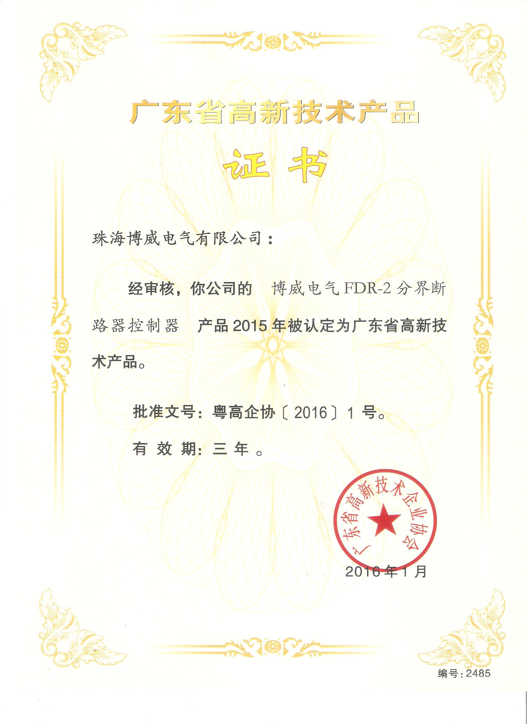 高新技術(shù)產(chǎn)品證書