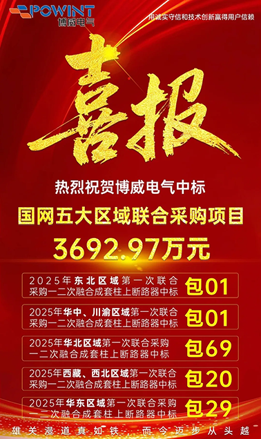 荷風(fēng)六月,捷報頻傳。在國家電網(wǎng)2025年華中川渝、華北、西藏西北、東北、華東區(qū)域第一次聯(lián)合采購項目中,博威電氣憑借行業(yè)領(lǐng)先的技術(shù)實力和卓越的產(chǎn)品性能,成功中標一二次融合成套柱上斷路器產(chǎn)品。此次中標實現(xiàn)了國家電網(wǎng)五大區(qū)域聯(lián)合采購項目的"大滿貫",總中標金額達3692.97萬元。